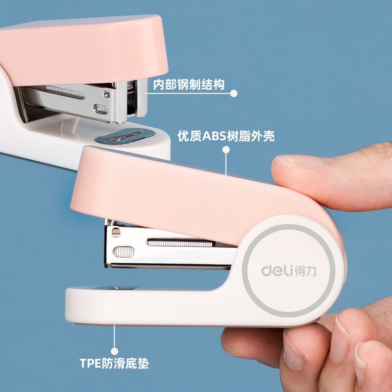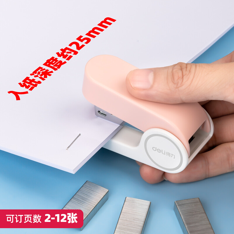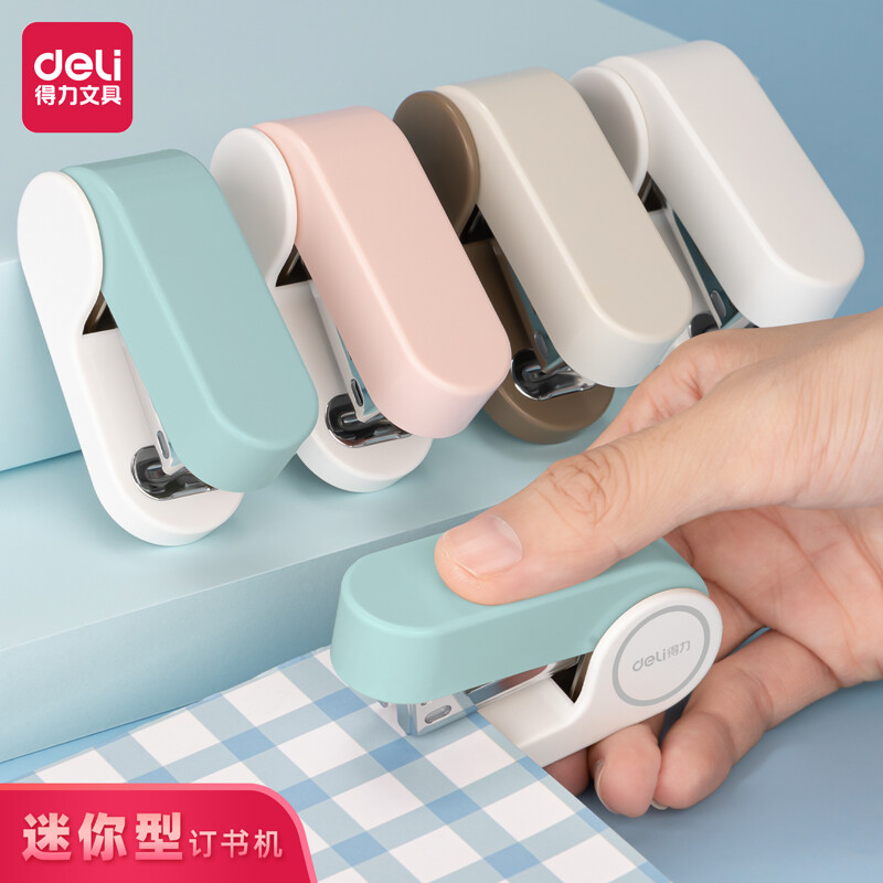 得力(deli) 迷你小号订书机 学生办公轻巧便携 马卡龙色订书机/装订器/订书器 浅红 TA201