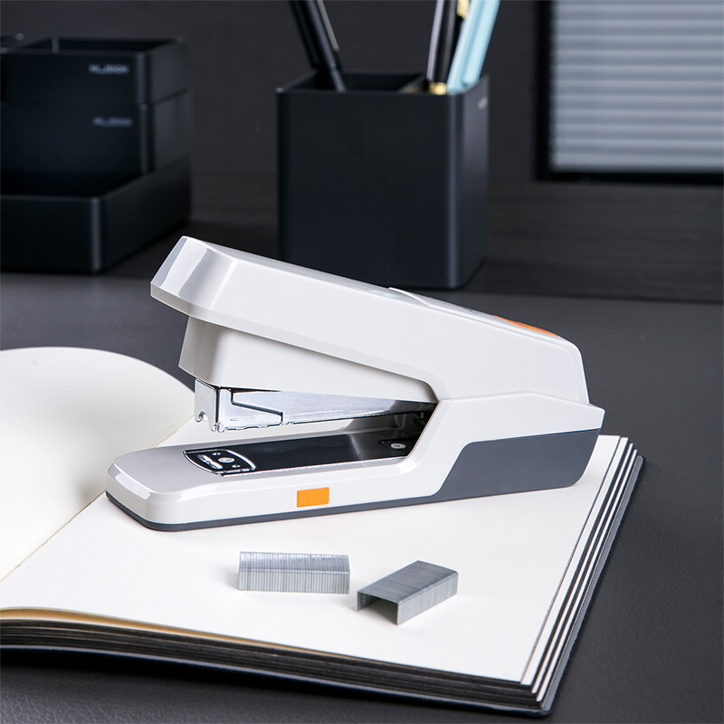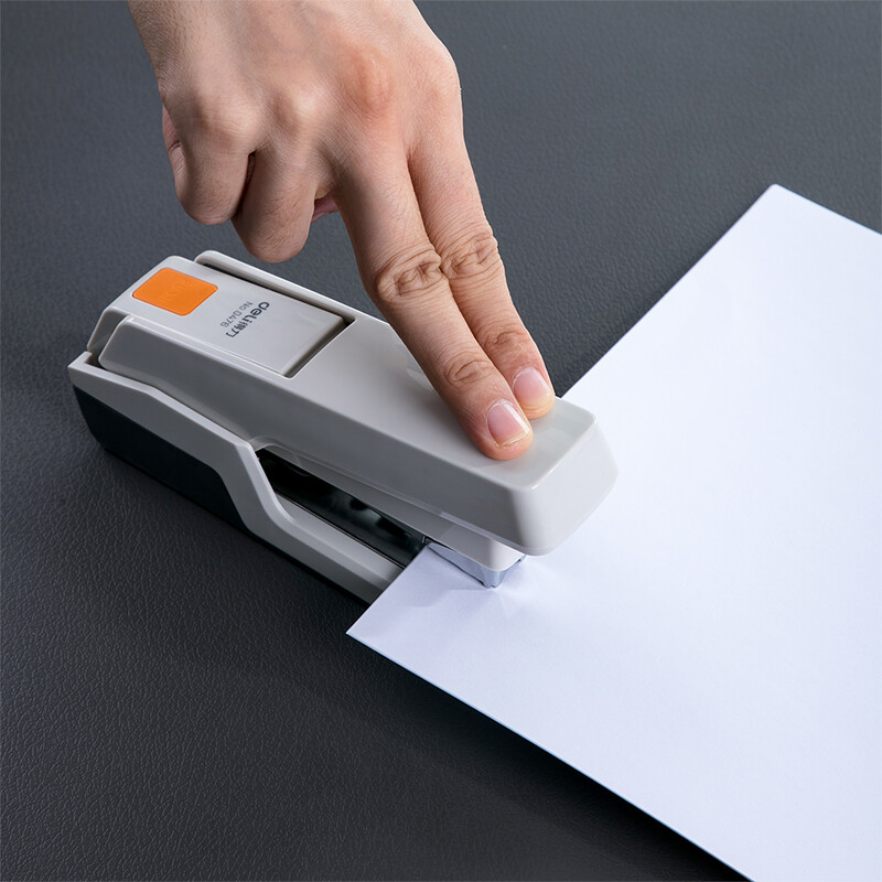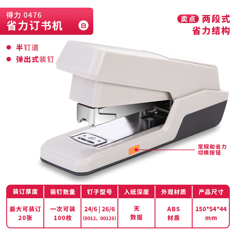 得力(deli)创新型12#省力订书机 推出式两段结构订书器 白色0476