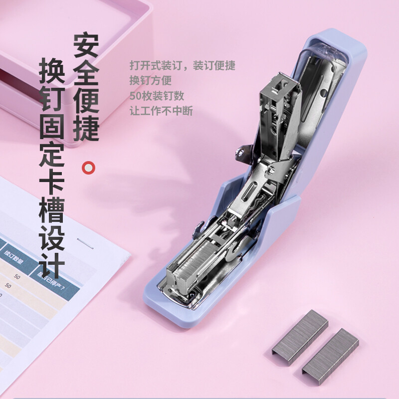 得力(deli)省力型订书机/订书器 适配24/6(12#)及26/6订书钉 办公用品 浅蓝0460