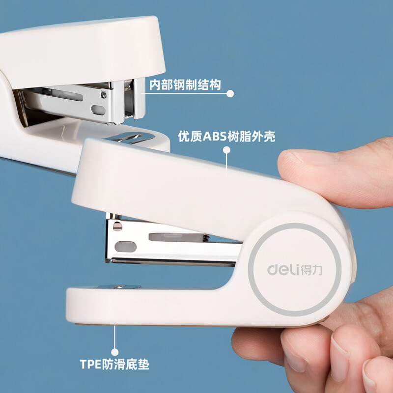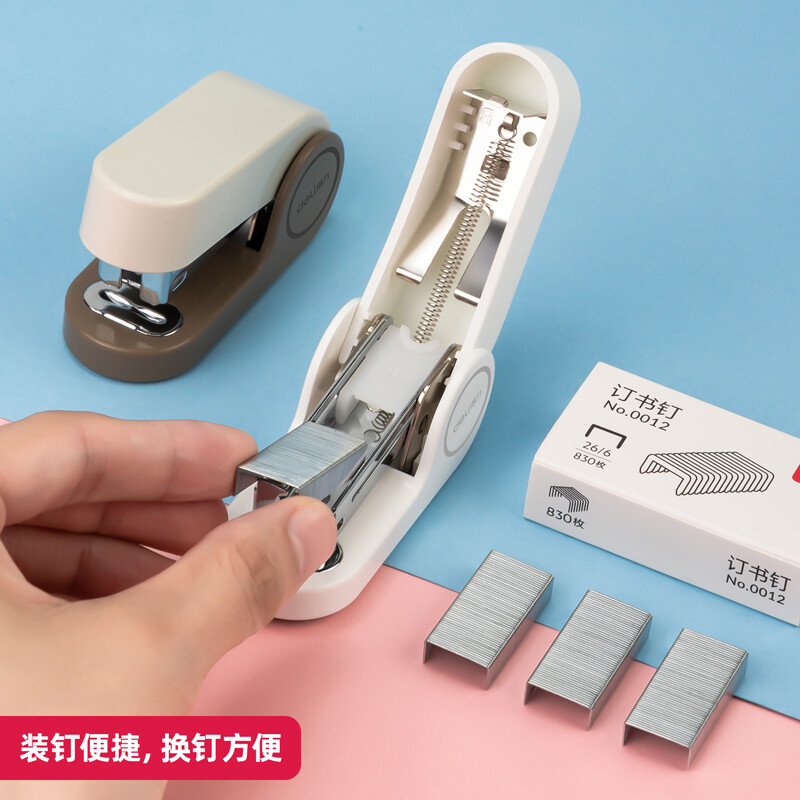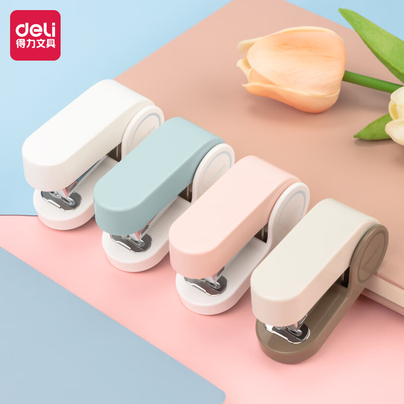 得力(deli) 迷你小号订书机 学生办公轻巧便携 马卡龙色订书机/装订器/订书器 白 TA201