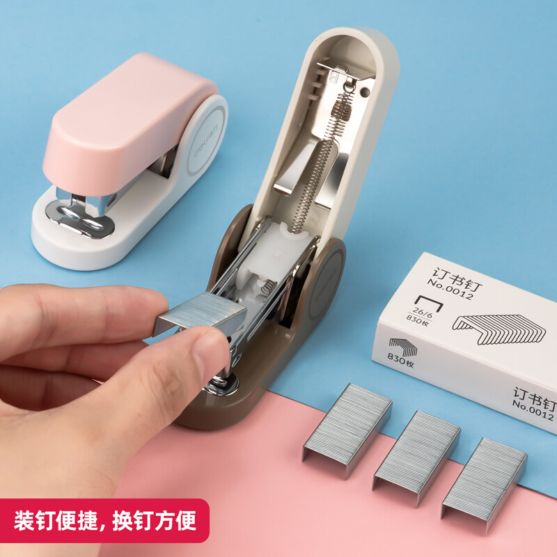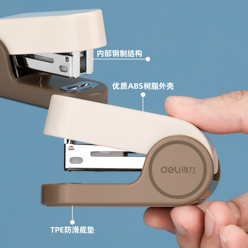 得力(deli) 迷你小号订书机 学生办公轻巧便携 马卡龙色订书机/装订器/订书器 棕 TA201