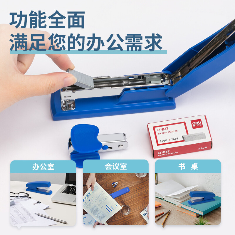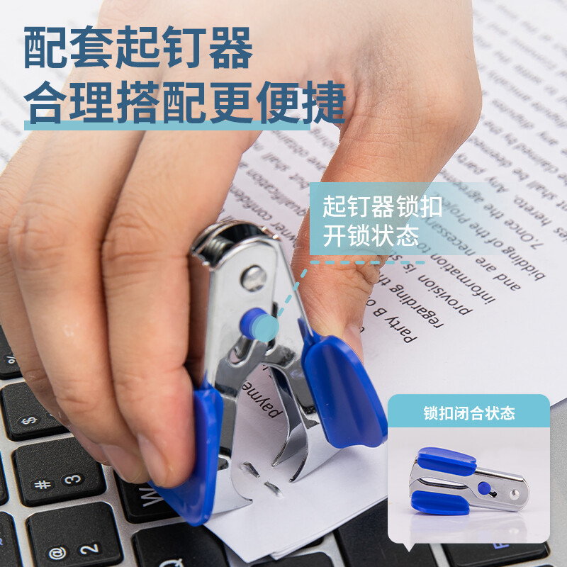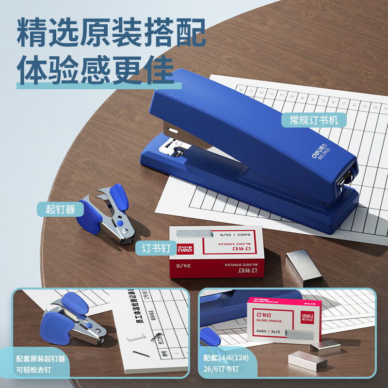 得力(deli)12#办公订书机3件套(订书器+订书钉+起钉器) 办公用品 蓝色0354