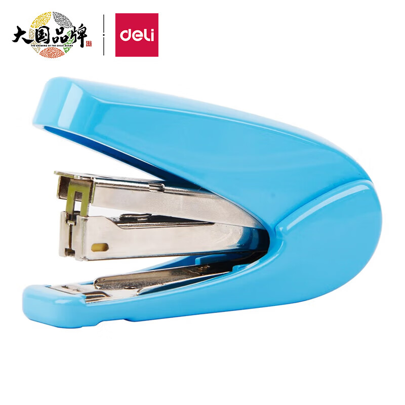 得力(deli)时尚炫彩型省力订书机/订书器 可订20页 适配12#订书钉 蓝色