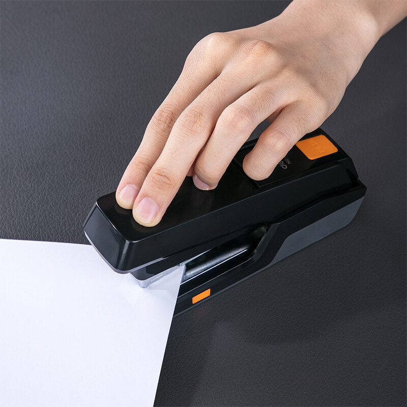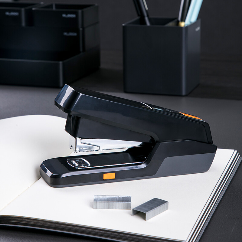 得力(deli)创新型12#省力订书机 推出式两段结构订书器 黑色0476
