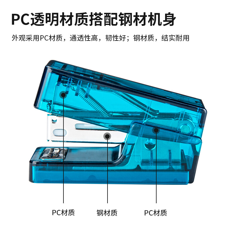 得力纽赛(NUSIGN)透明迷你订书机(订书器+订书钉)口袋装学生办公轻巧便携透明订书器组合 透明蓝 NS083F