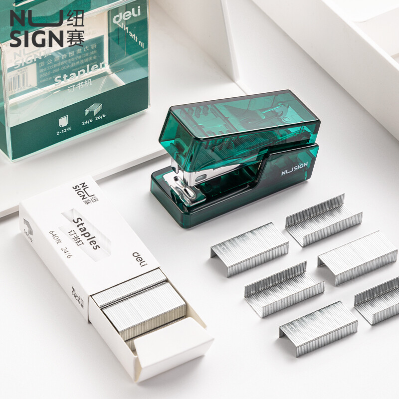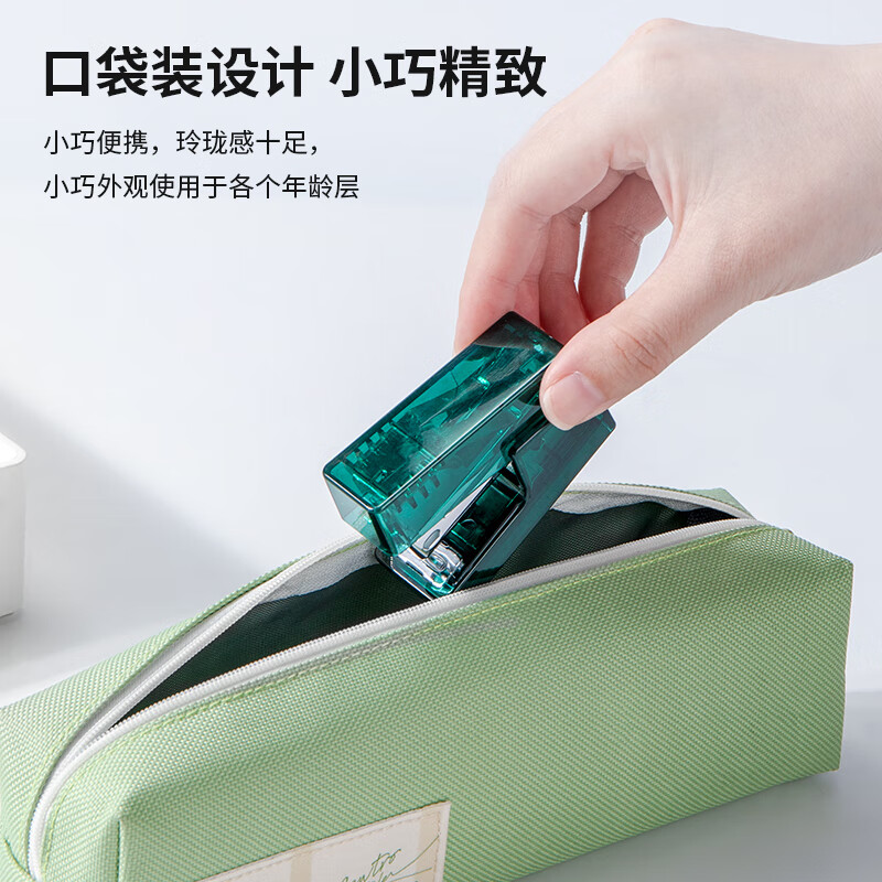 得力纽赛 透明迷你订书机NS083F(订书器+订书钉)透明绿