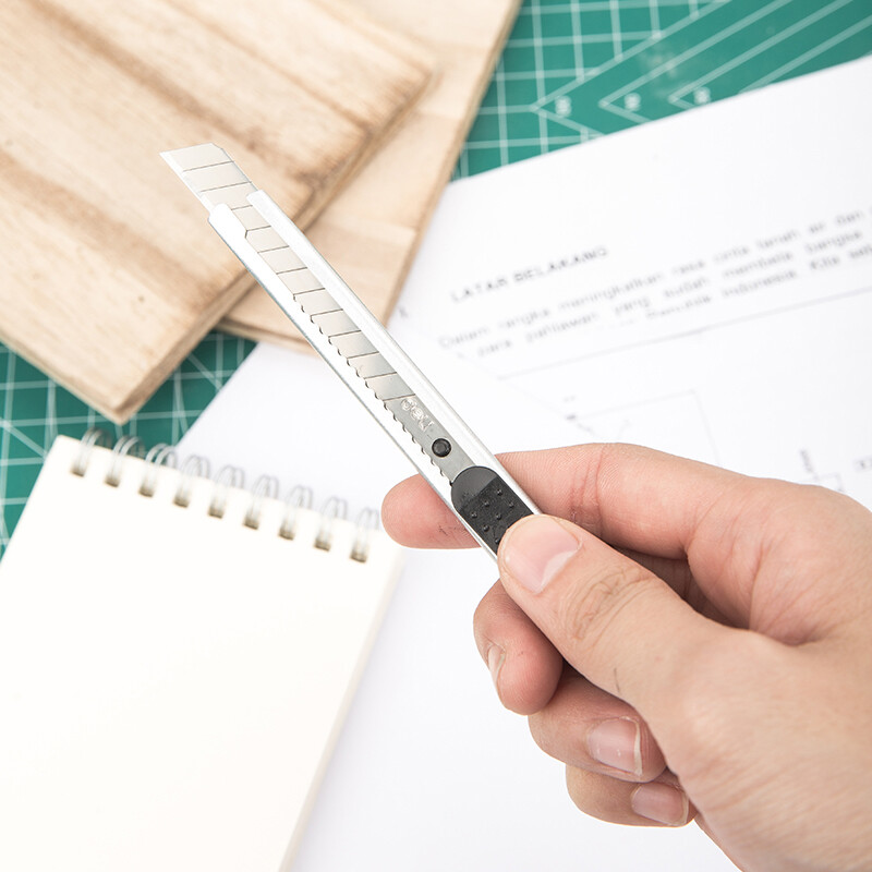 得力(deli)小号薄款金属外壳办公家用美工刀/裁纸刀 办公用品 2053