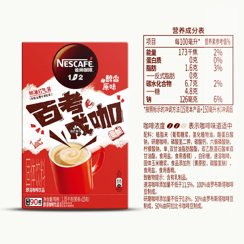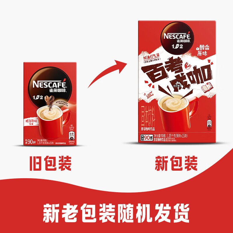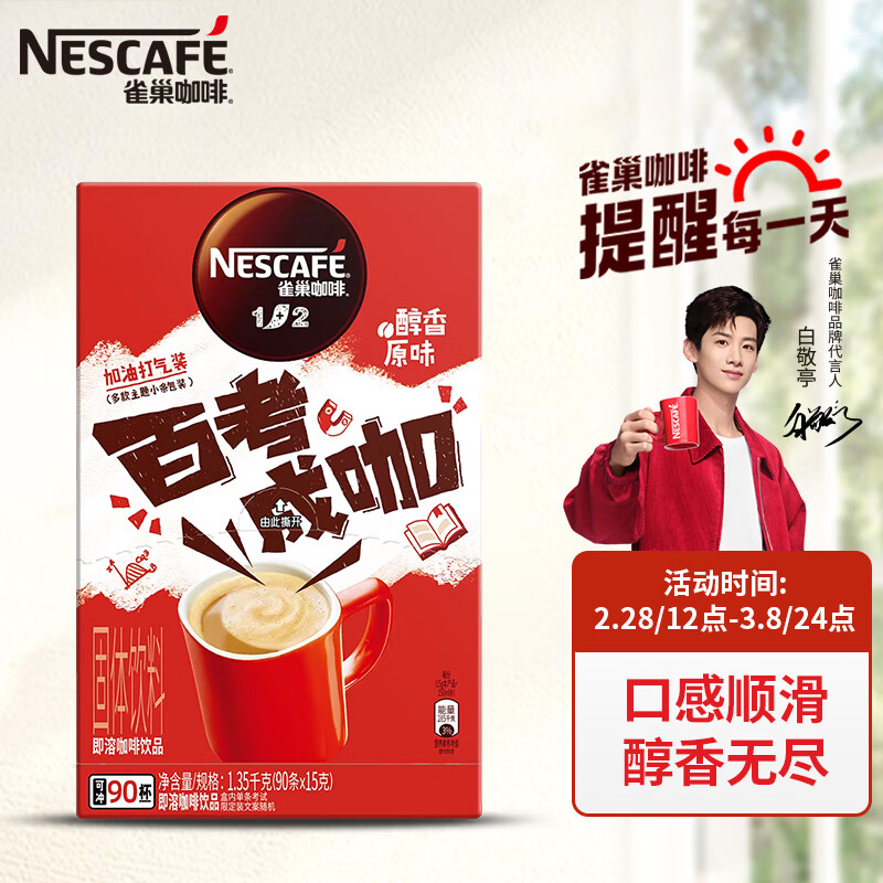雀巢(Nestle)速溶咖啡 1+2 原味微研磨冲调饮品90条1350g 高考限定白敬亭同款