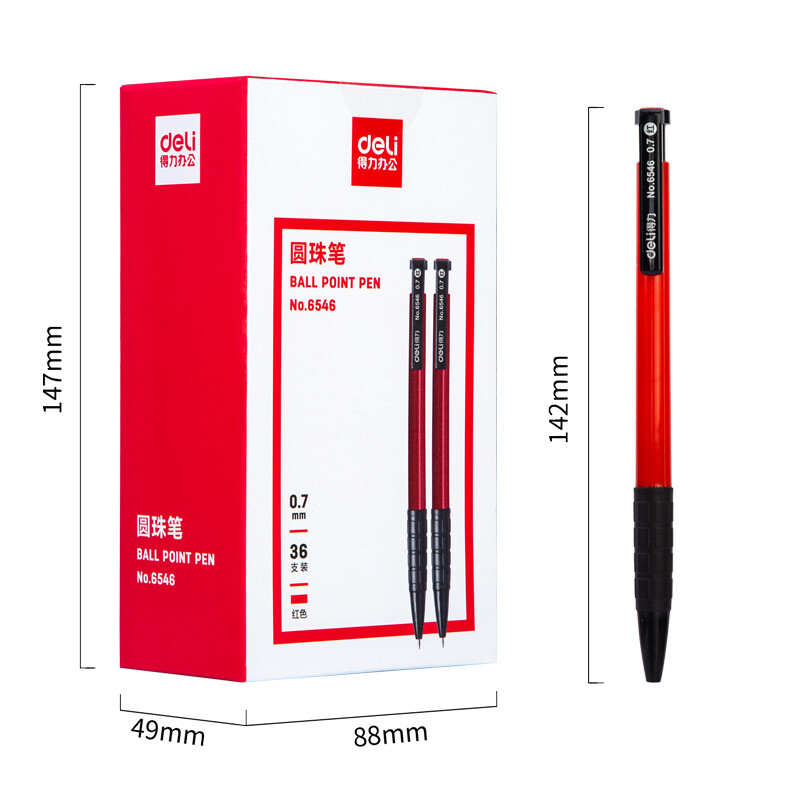 得力(deli)0.7mm红色按动圆珠笔中油笔 软胶握手YZB-6546