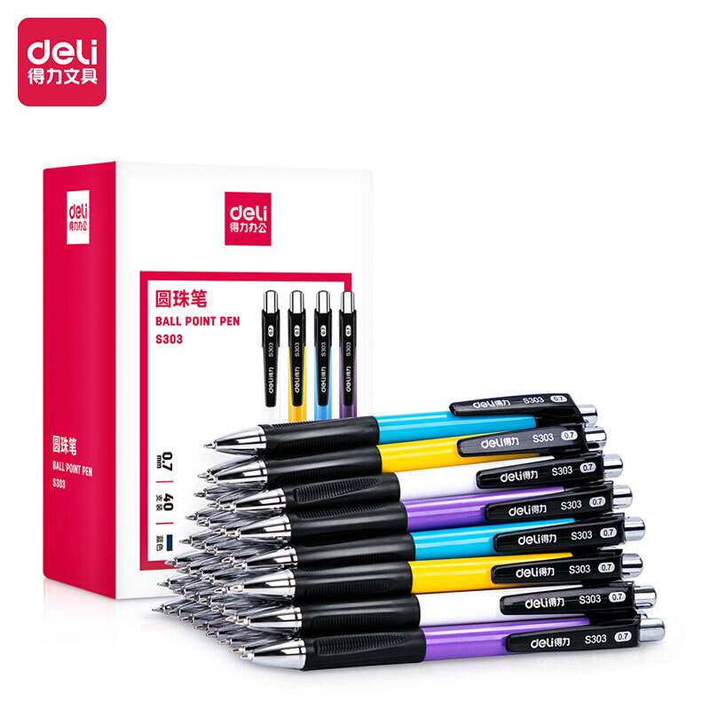 得力(deli)圆珠笔中油笔 0.7mm子弹头按动笔原子笔 办公用品 蓝色 40支/盒 S303