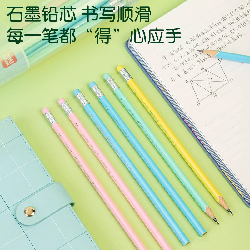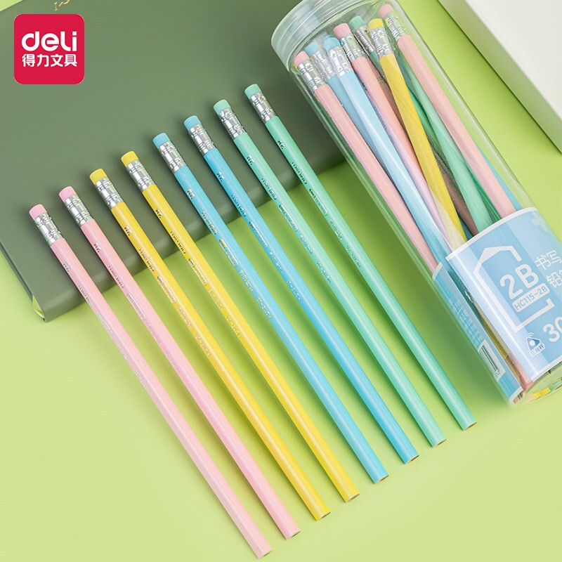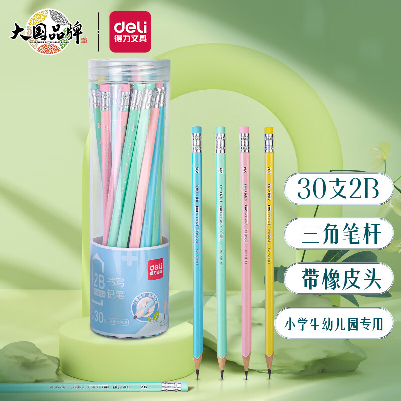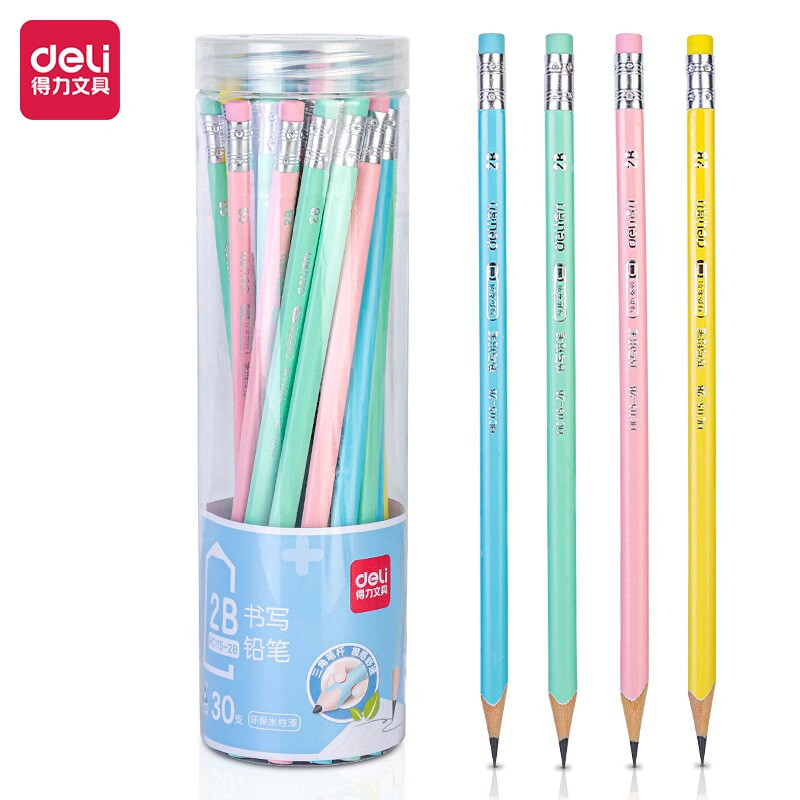 得力(deli)2B书写铅笔学生铅笔考试铅笔 30支/桶马卡龙色三角笔杆 小学生幼儿园专用HC115-2B