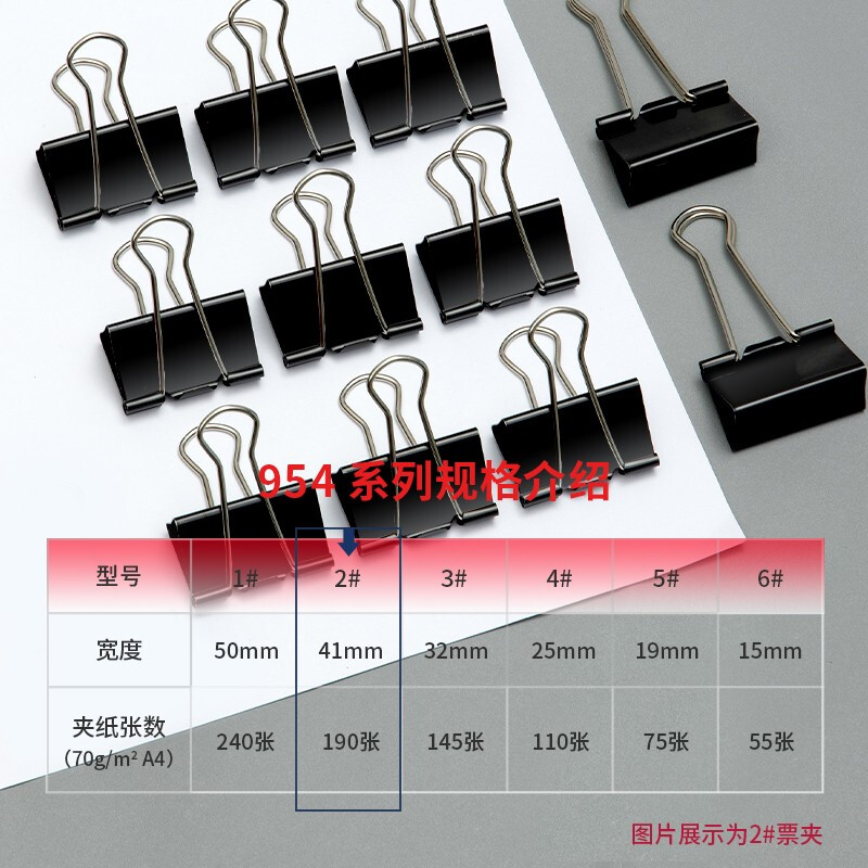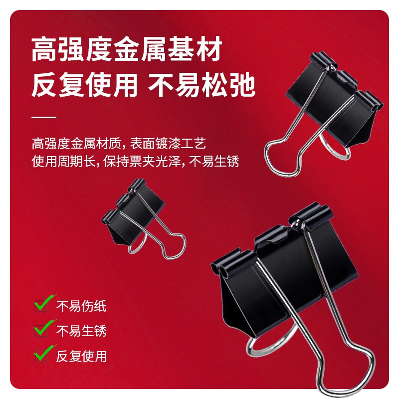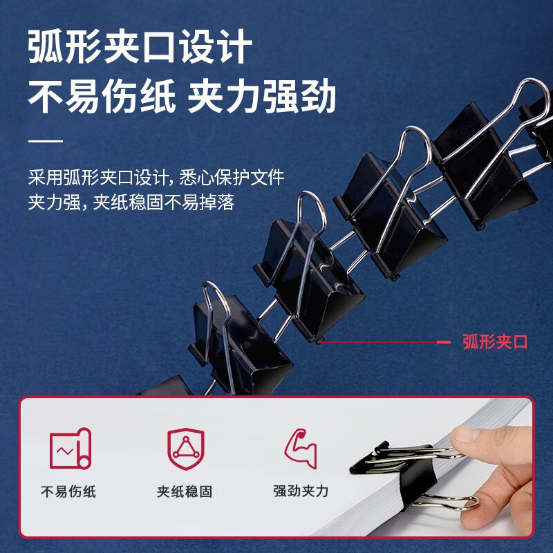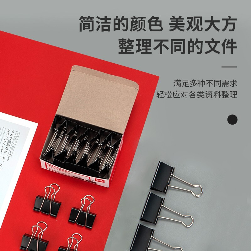 得力(deli)41mm大号黑色长尾夹/燕尾夹/2# 12只/盒