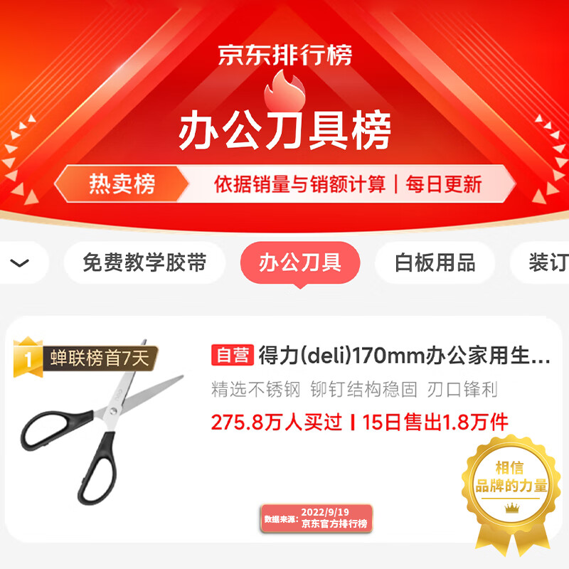 得力(deli)170mm办公剪刀 1把 黑色0603