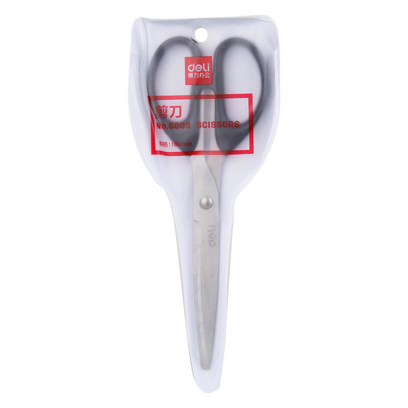 得力(deli)180mm中号办公生活剪刀 黑色6009