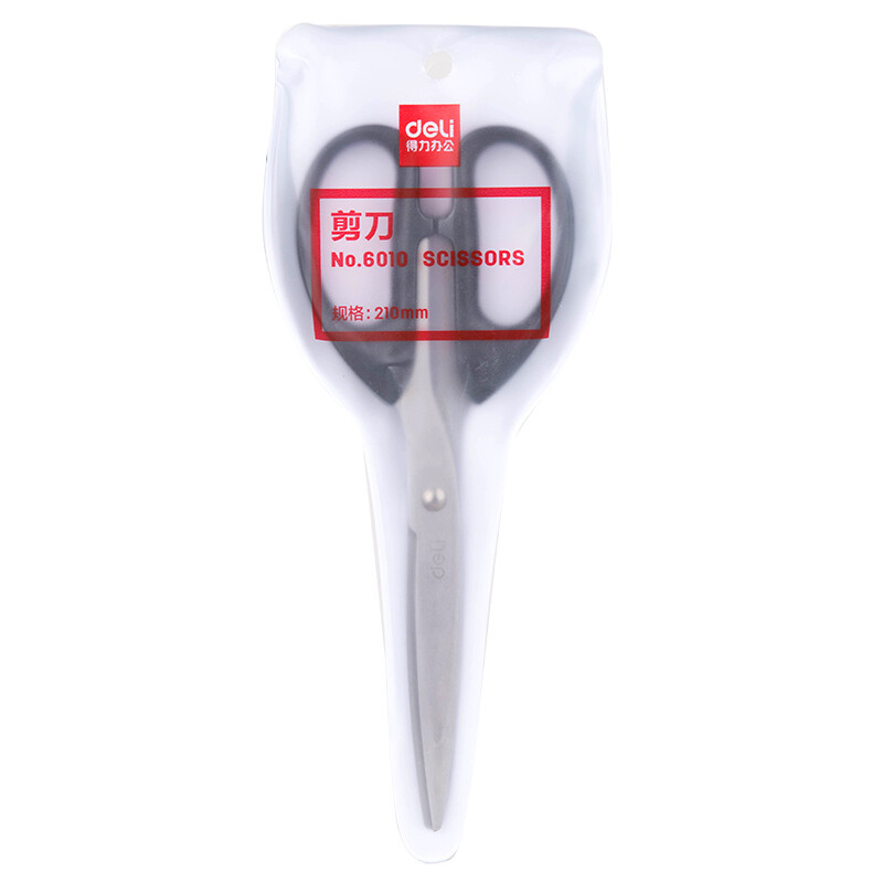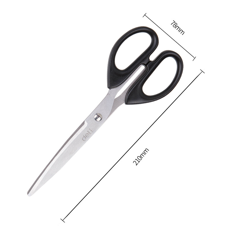 得力(deli)210mm大号办公生活剪刀 黑色6010