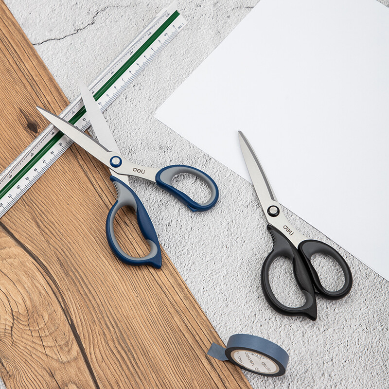 得力(deli)175mm中号办公家用剪刀 弧形剪片省力剪刀 黑色77759