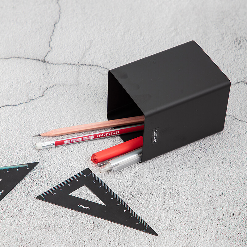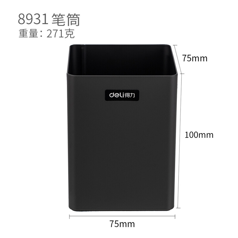 得力(deli) 金属网状笔筒 圆形方形简约创意 桌面收纳盒 办公用品 黑色 8931金属钢制笔筒