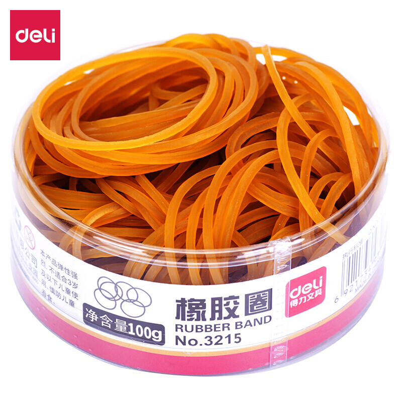 得力(deli)高韧性高强度橡皮筋橡胶圈 100g/盒 3215