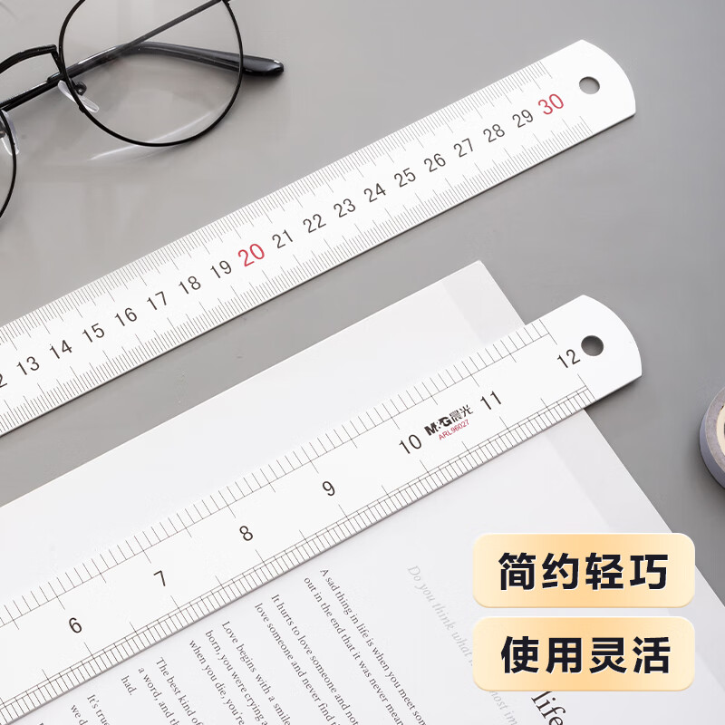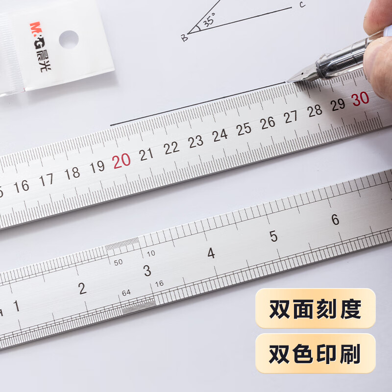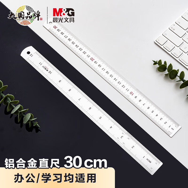 晨光(M&G)文具30cm铝合金直尺 测量绘图刻度尺子 双向刻度尺 办公用品 开学文具ARL96027