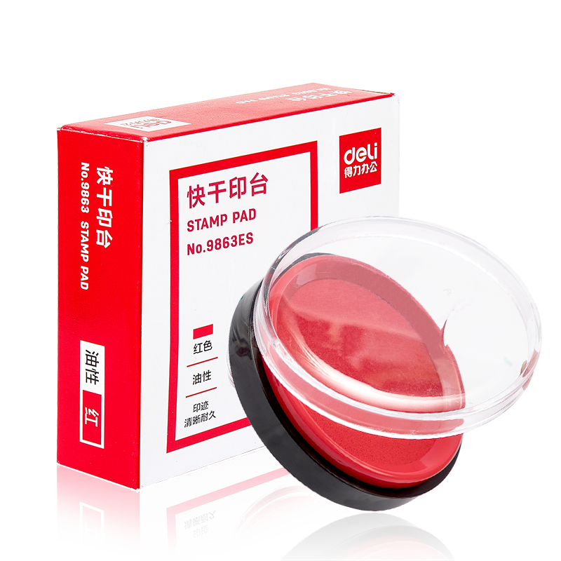 得力(deli)圆形透明外壳快干印台 9863ES红色印台