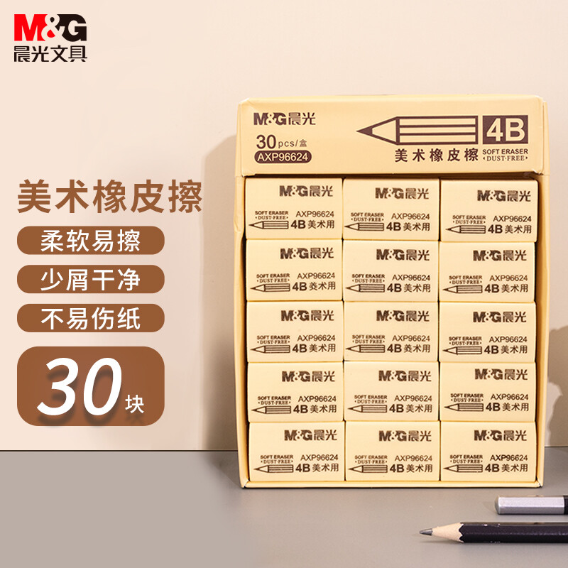 晨光(M&G)文具4B黄色大号橡皮 学生美术绘图考试橡皮擦 30块/盒AXP96624