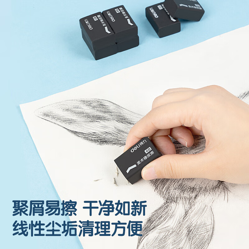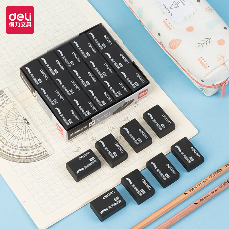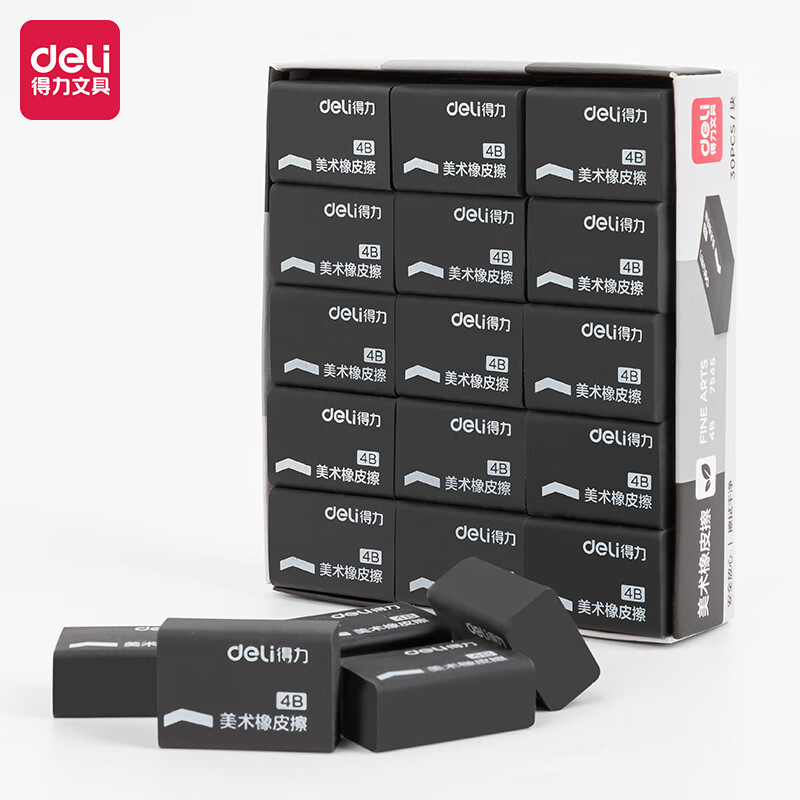 得力(deli)30块4B黑色橡皮擦学生绘图考试美术彩铅画橡皮 7545
