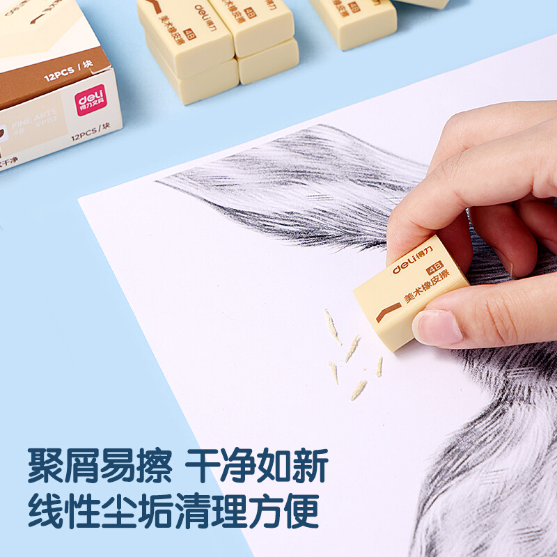 得力(deli) 12块装4B橡皮擦 黄色美术绘图橡皮柔软易擦少屑学生开学文具VP112
