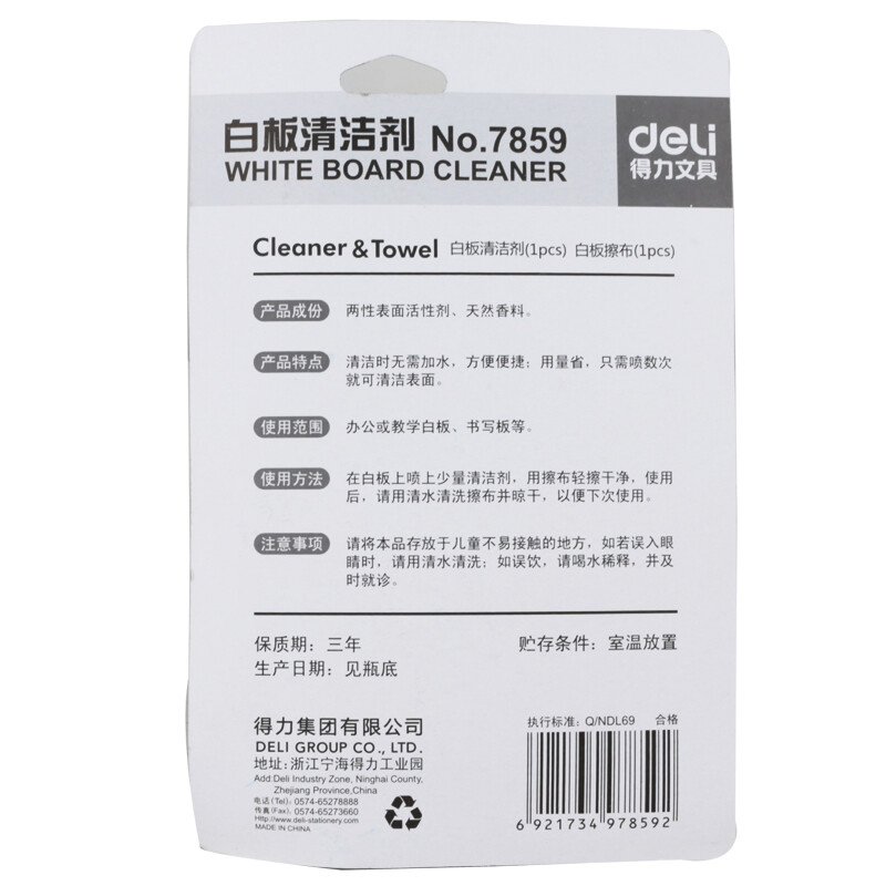 得力(deli) 白板配件 白板擦 白板清洁液清洗液 磁钉 白板笔 粉笔 办公用品 7859 清洁套装(白板清洁剂+白板擦布)