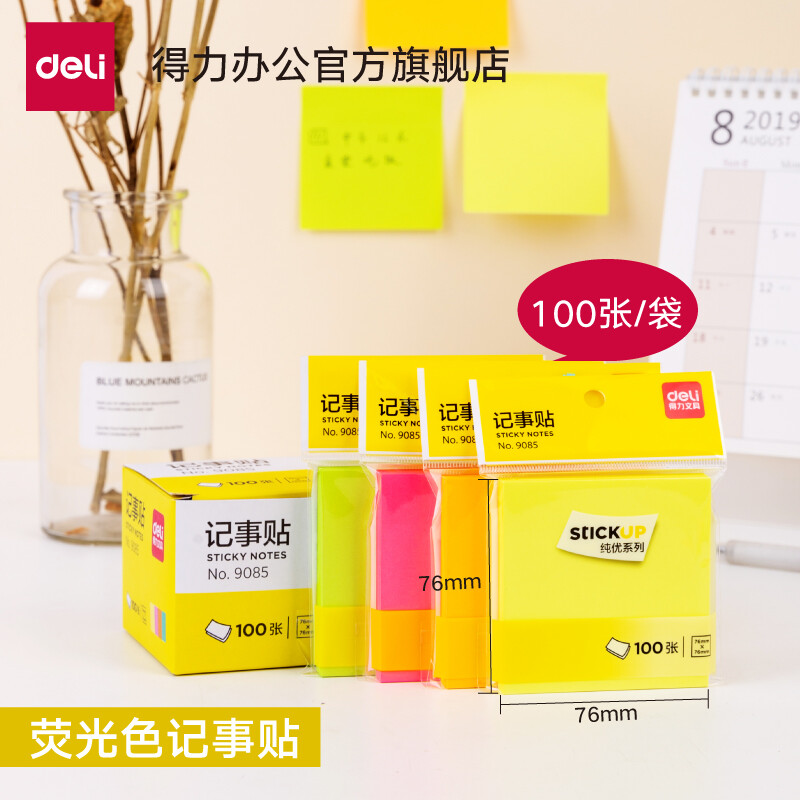 得力(deli) 【多种规格】记事贴便利贴标签纸便签纸强黏性可反复粘撕 9085(76*76mm颜色随机) 两包装