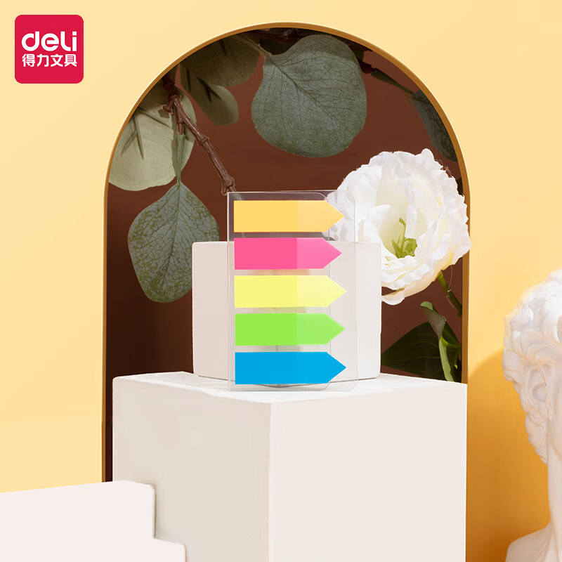 得力(deli)100张5色荧光膜指示标签贴 43*12mm箭头款分类索引便利贴记事贴9064
