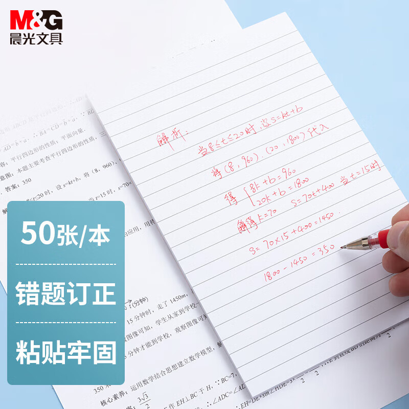 晨光(M&G)文具白色50张横线便利贴 粘性便签纸计划本留言贴 143*215mm记事贴优事贴便签本子 单本装YS-108