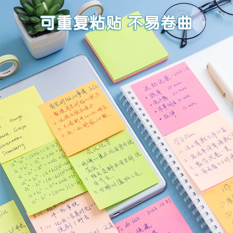 晨光(M&G)文具88张荧光5色便利贴 粘性标签贴留言贴 76*76mm记事贴优事贴便签本子 单本装YS-61