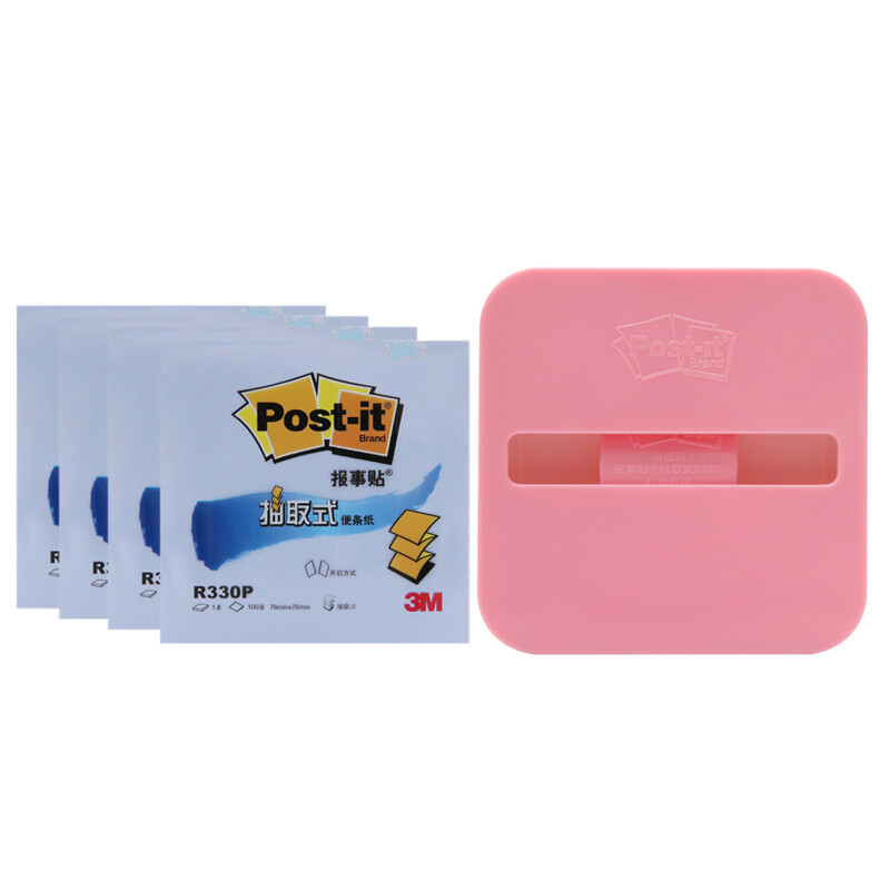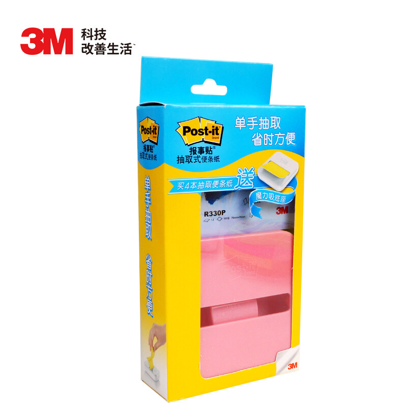 3M 便利贴 4本装R330蓝色/报事贴/便签本抽取式4+1套装(含粉色底座)