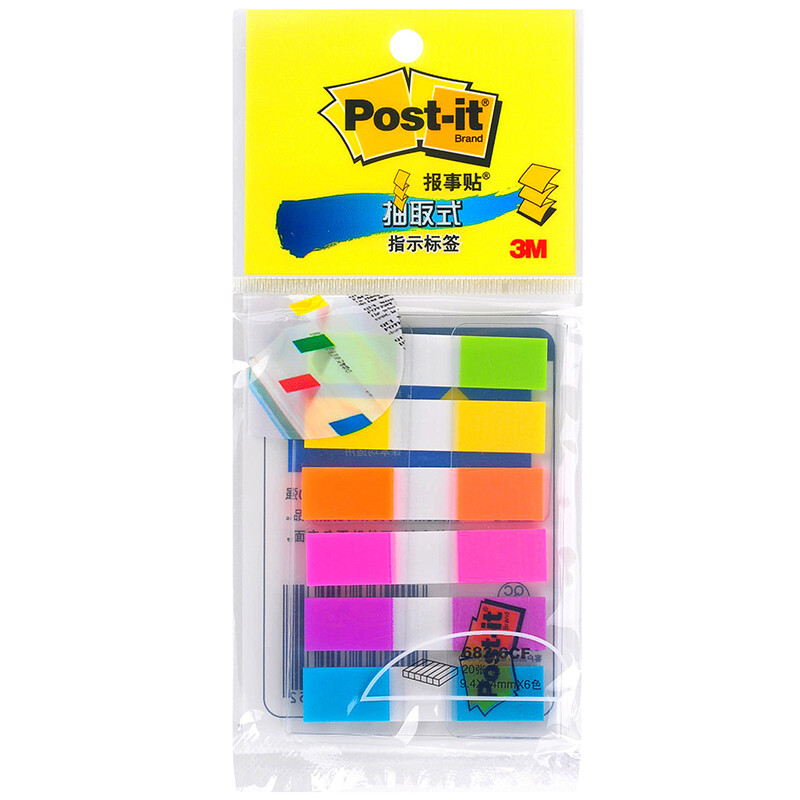 3M 便签 便利贴/便条纸/便签纸/透明指示标签 办公用品 683-6CF 抽取式标签(6色装)