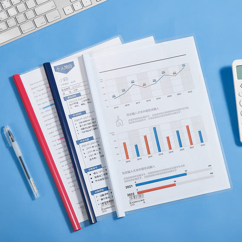 齐心(Comix) 10个装 强力加厚型抽杆夹/文件夹/报告夹/拉杆夹A4 蓝色 办公文具Q310