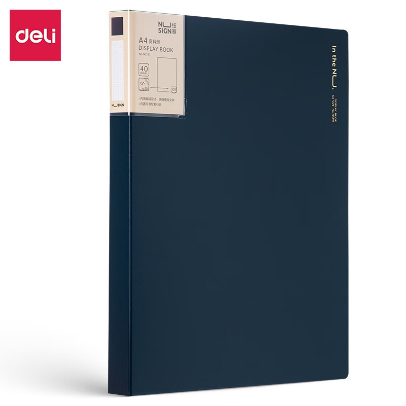 得力(deli) A4活页资料册 彩色插页袋 孕检资料册 办公用品 颜色随机 单个装 【纽赛款】40页 墨海蓝