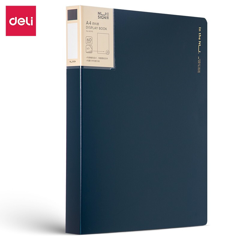 得力(deli) A4活页资料册 彩色插页袋 孕检资料册 办公用品 颜色随机 单个装 【纽赛款】60页 墨海蓝