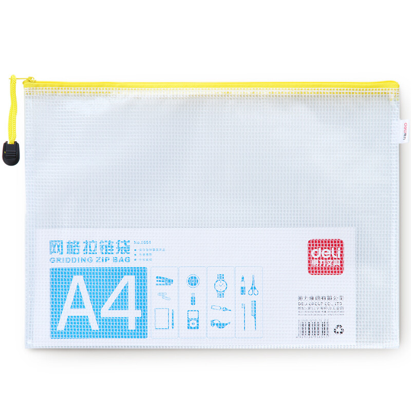 得力(deli) 透明网格学科分类袋 学生试卷分类文具袋 5654 A4