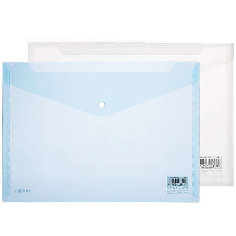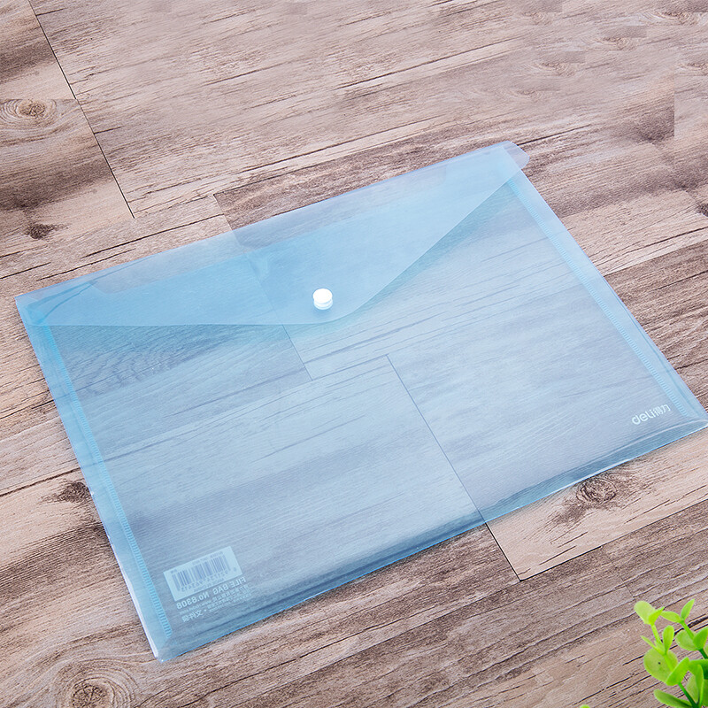 得力(deli)A4透明文件袋 按扣资料袋 塑料档案袋 试卷票据收纳袋 8308蓝色
