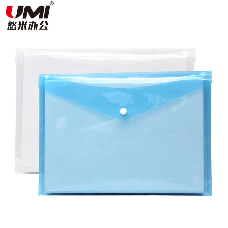 悠米(UMI)橘皮纹按扣文件袋纽扣袋,A4 W08002B 蓝1个