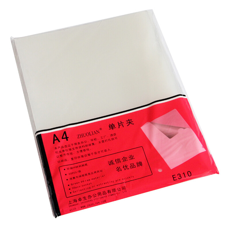 卓联E310单片夹 L型文件夹A4 透明单页文件袋 文件保护套 两页文件袋 30个装 16C