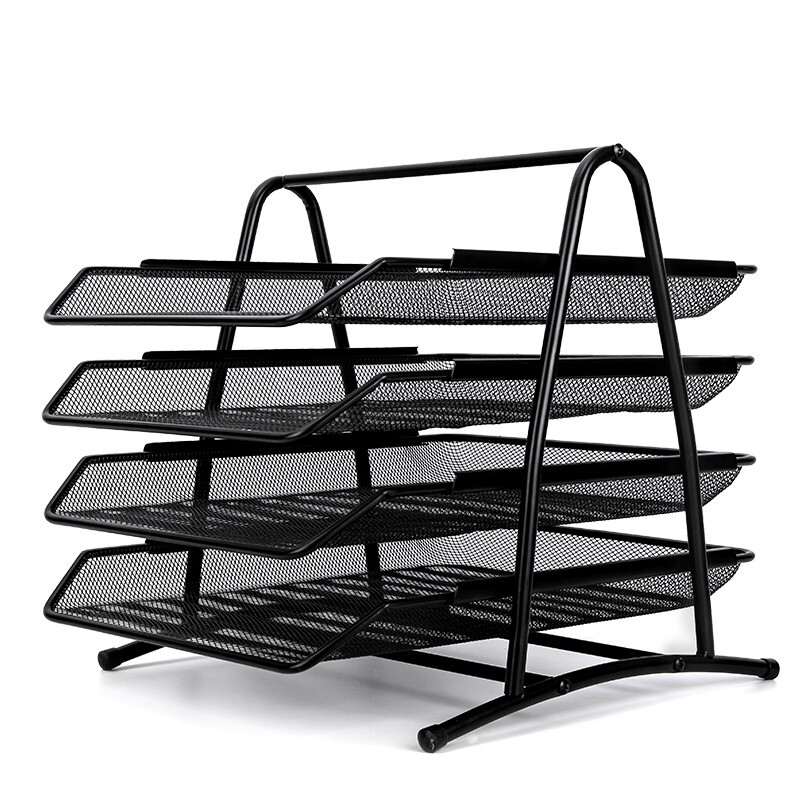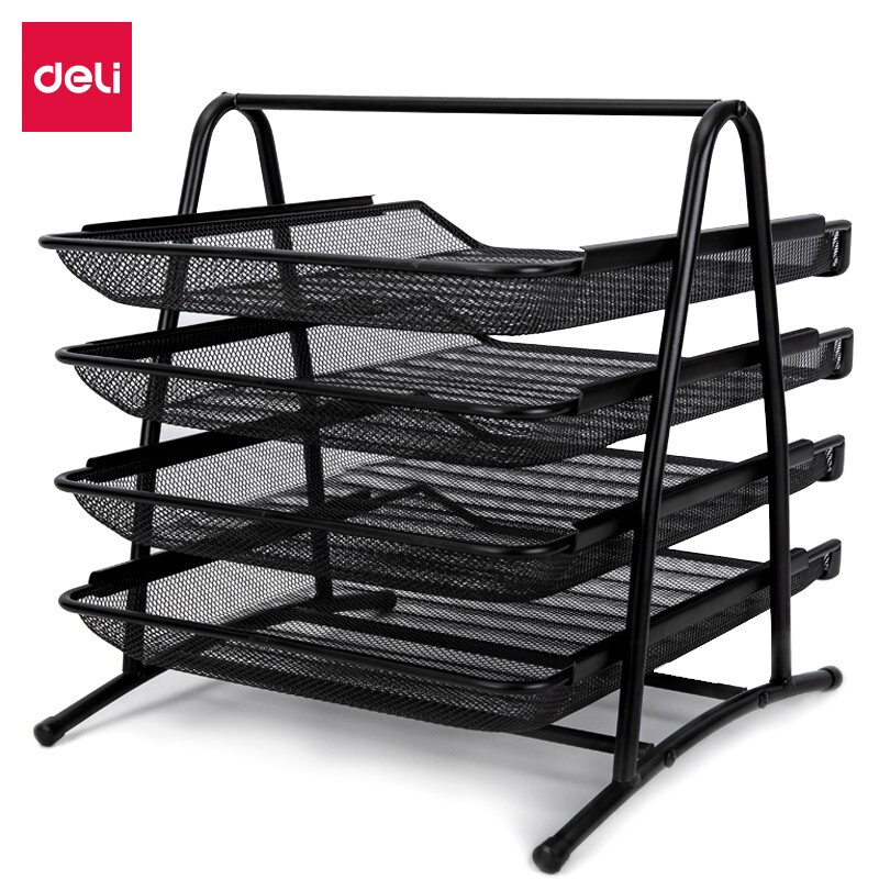 得力(deli) 三层镂空收纳文件座 自由拆卸组装三层文件盘/文件框/文件架 牢固耐用 9184 四层金属黑