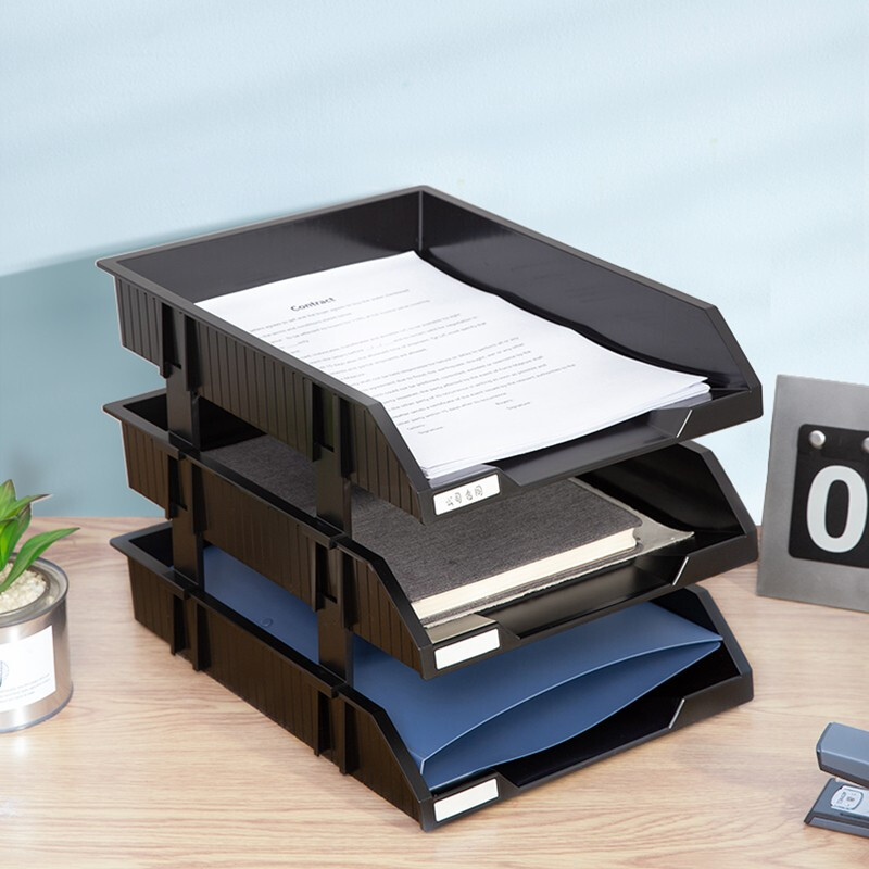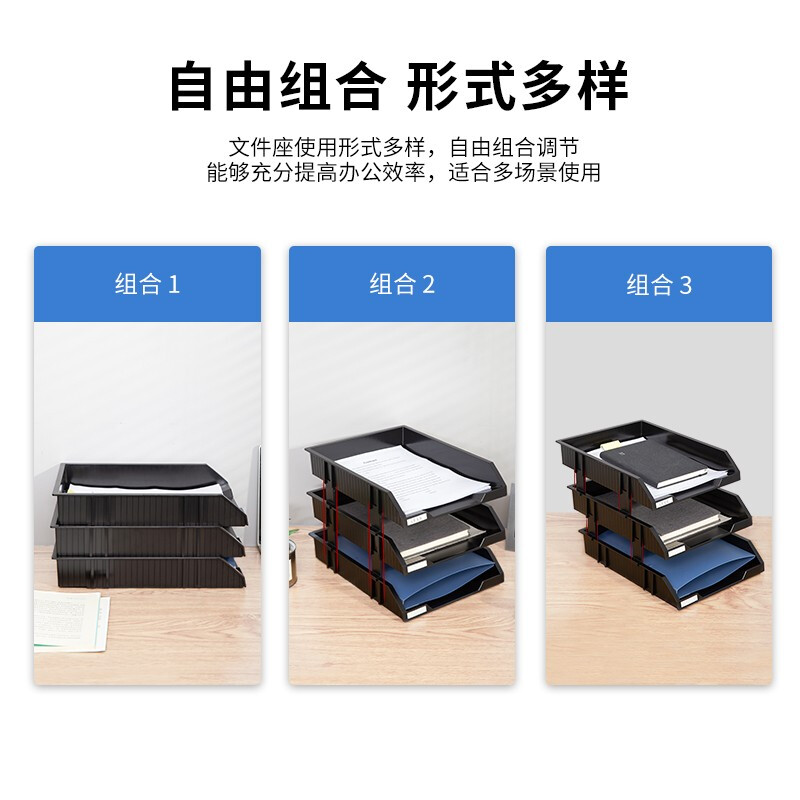 得力(deli) 三层镂空收纳文件座 自由拆卸组装三层文件盘/文件框/文件架 牢固耐用 9206 黑色
