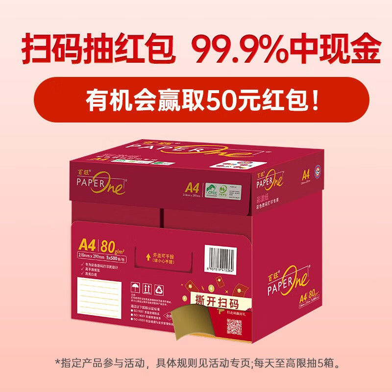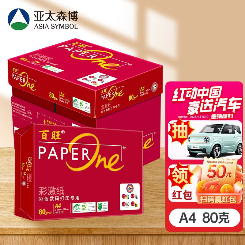 亚太森博 (Asia Symbol)红百旺 A4复印纸打印纸 PEFC认证500张/包 【红百旺5包-80g-A4 2500张】