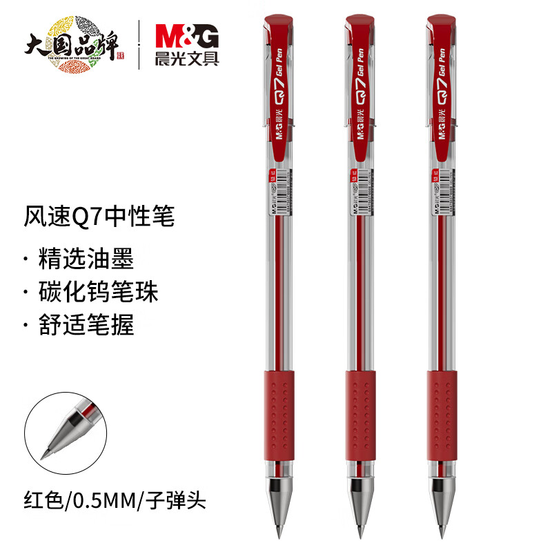 晨光(M&G)文具经典风速Q7/0.5mm红色中性笔 子弹头签字笔 办公用笔 拔盖水笔12支/盒