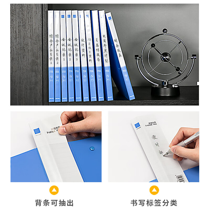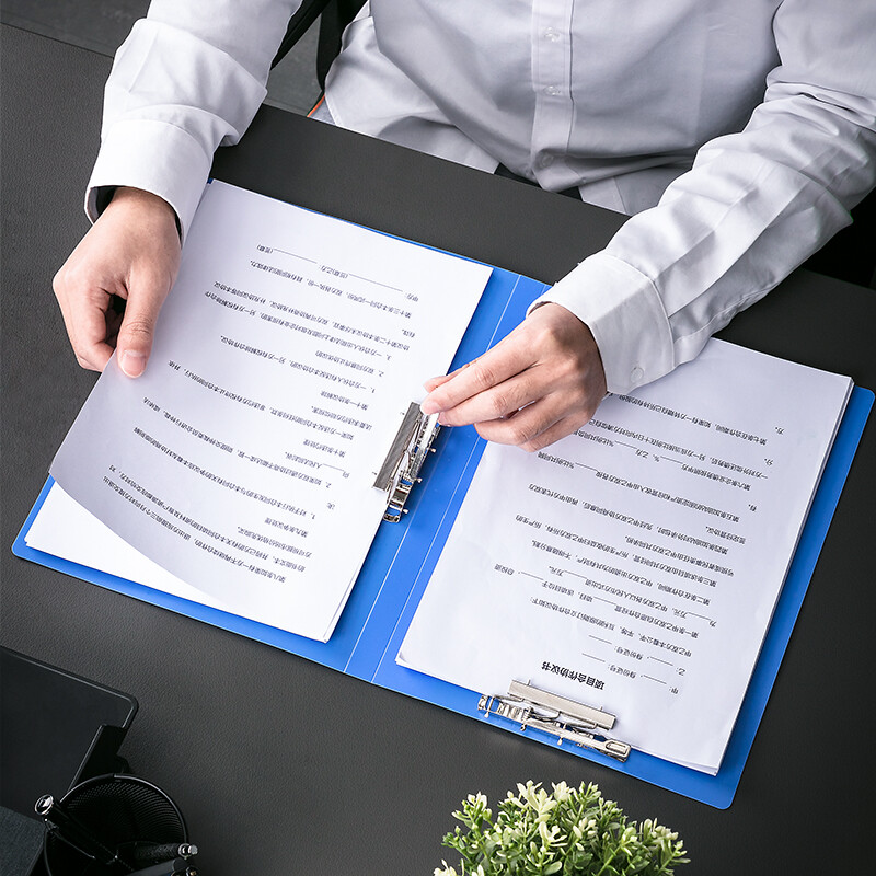 得力(deli)A4金属双强力夹硬文件夹5302蓝色