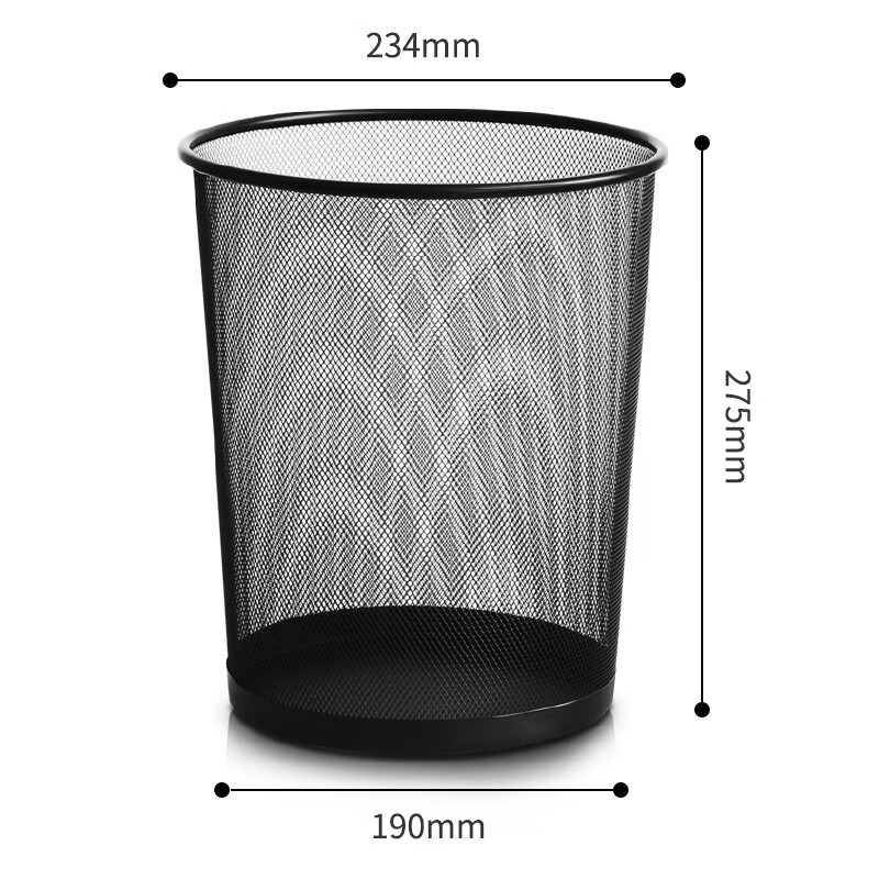 得力(deli)金属网格垃圾桶 家用清洁垃圾纸篓 黑色 办公用品厨房厕所 9188金属铁网(直径234mm)小号