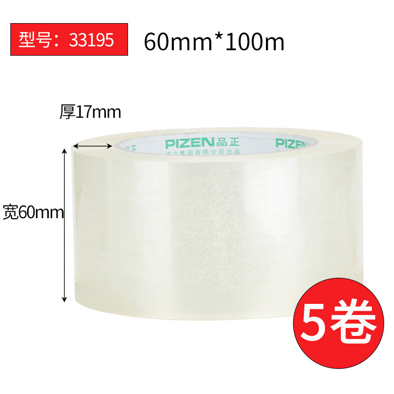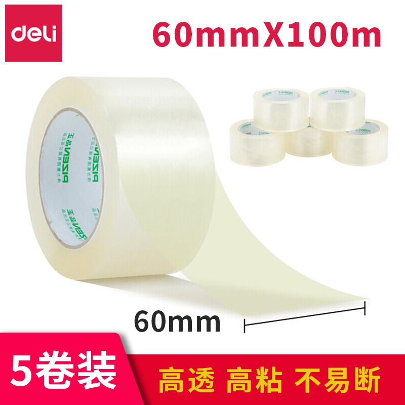 得力(deli)透明封箱胶带大卷加厚宽强力 60mm*100m 33195A (5卷装/筒)