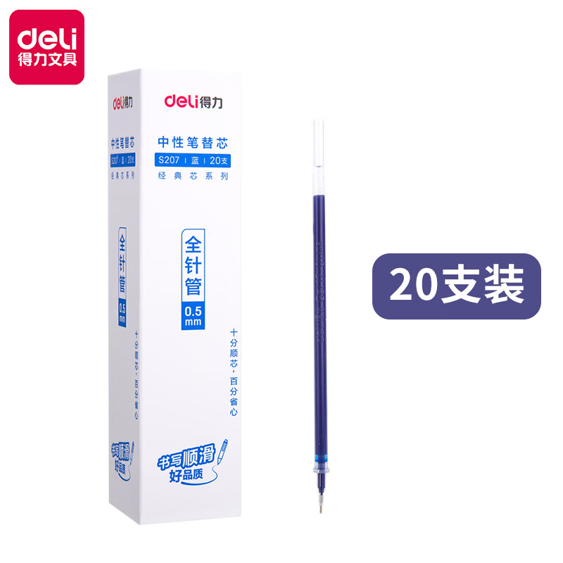 得力(deli)S207 0.5mm蓝色中性笔笔芯 【s207笔芯蓝色】