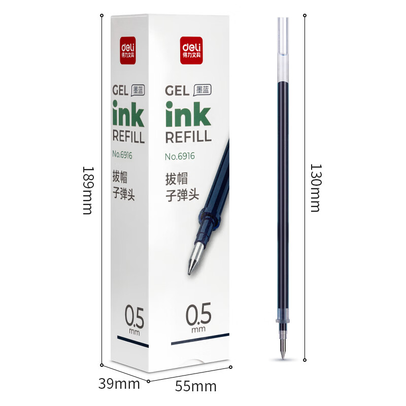 得力(deli)0.5mm墨蓝色中性笔笔芯 子弹头水笔签字笔替芯 20支/盒【6916替芯/20支墨蓝色】